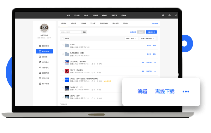 汇集VR漫游、VR视频、VR直播三大可视化编辑器,制作更高效直观